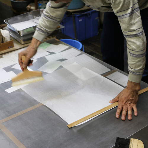 3.和紙に中性糊を付けます。