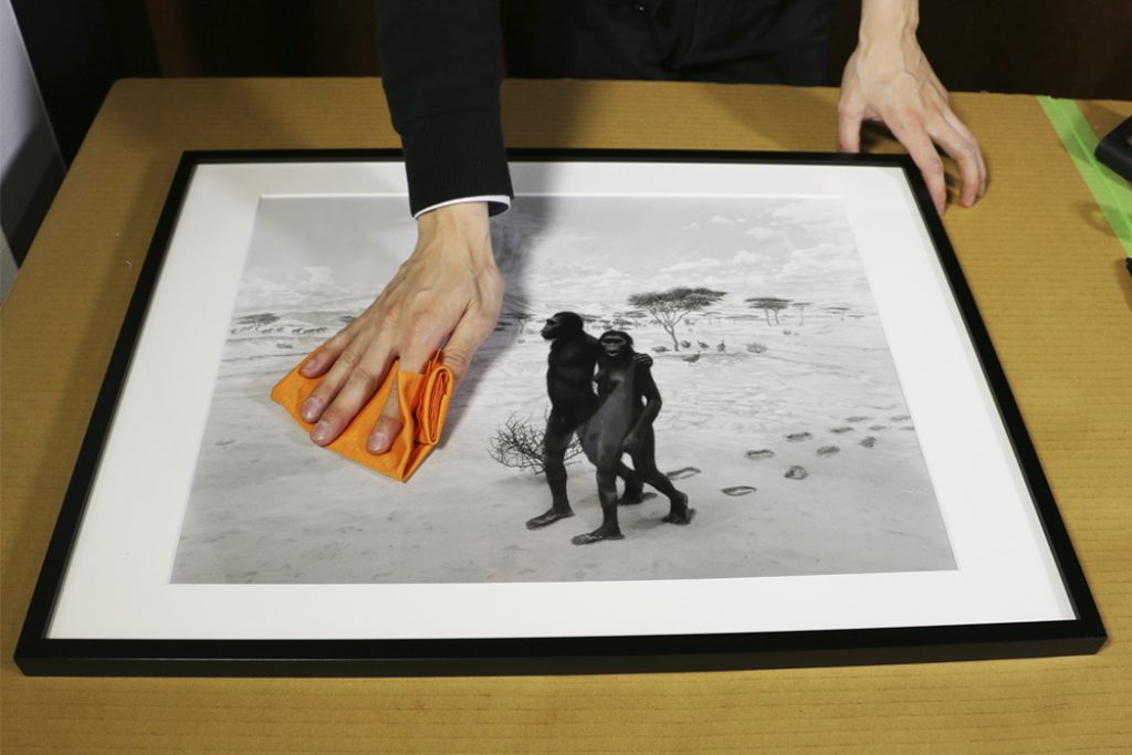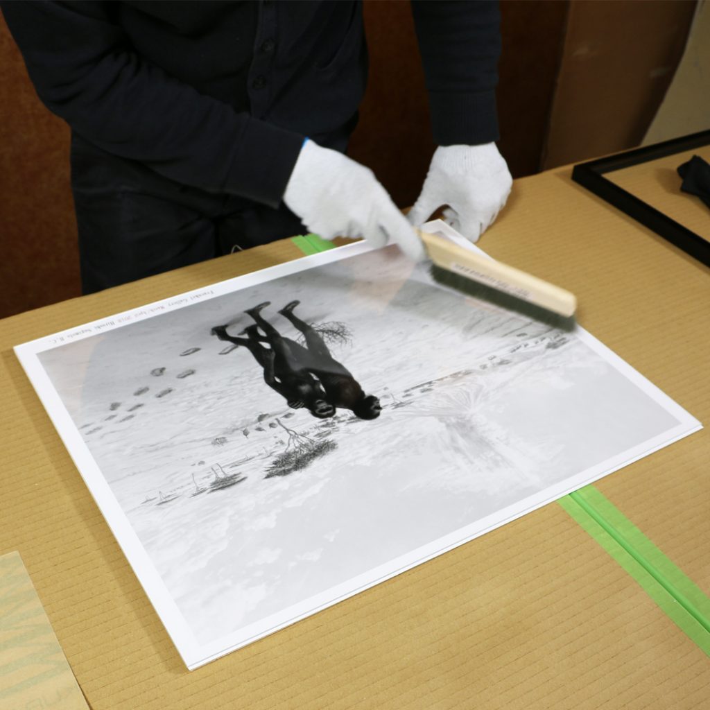 アクリル板を作品の上に敷きます。
