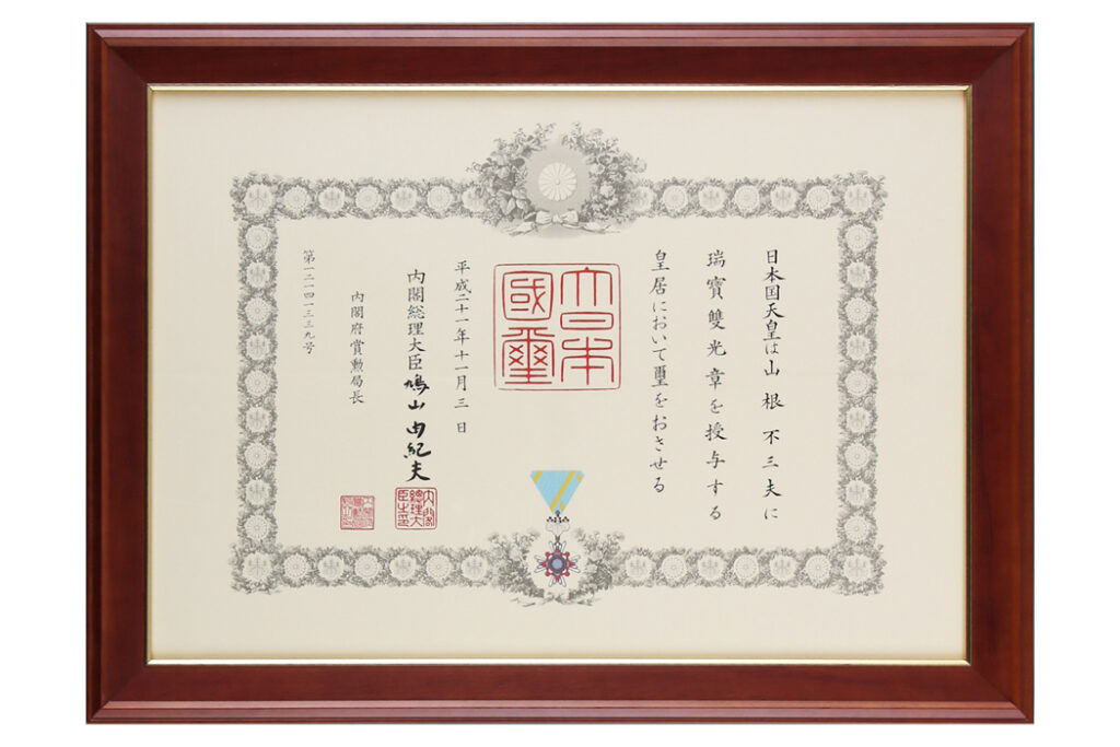 サイズ:595㎜×418㎜ 額縁勲記サイズの賞状用紙です。今回は寸六入山BRの勲記サイズを使って額装致します。
