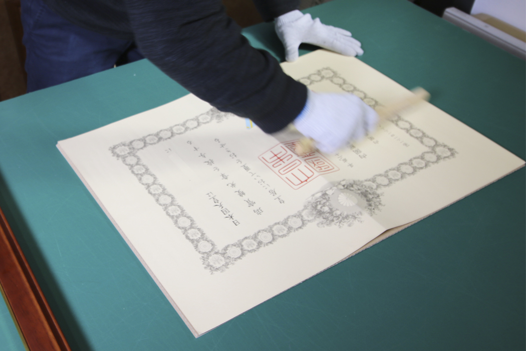 賞状用紙の埃を払います。