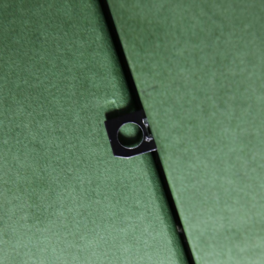 絨毯を引っ張りながら木枠に張り込んでいきます。絨毯は強度があるため比較的強く引っ張りながら張り込んでいきます。