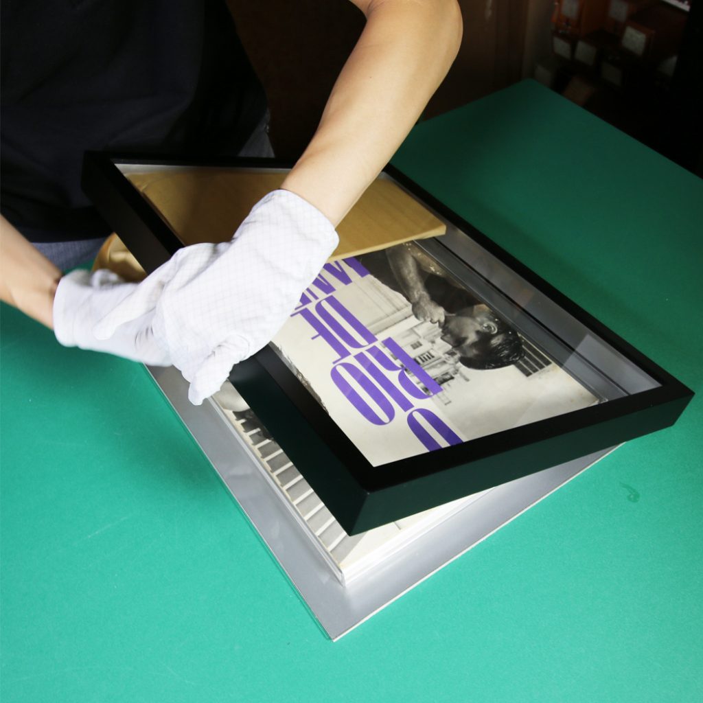 埃が入らないように額縁を被せます。