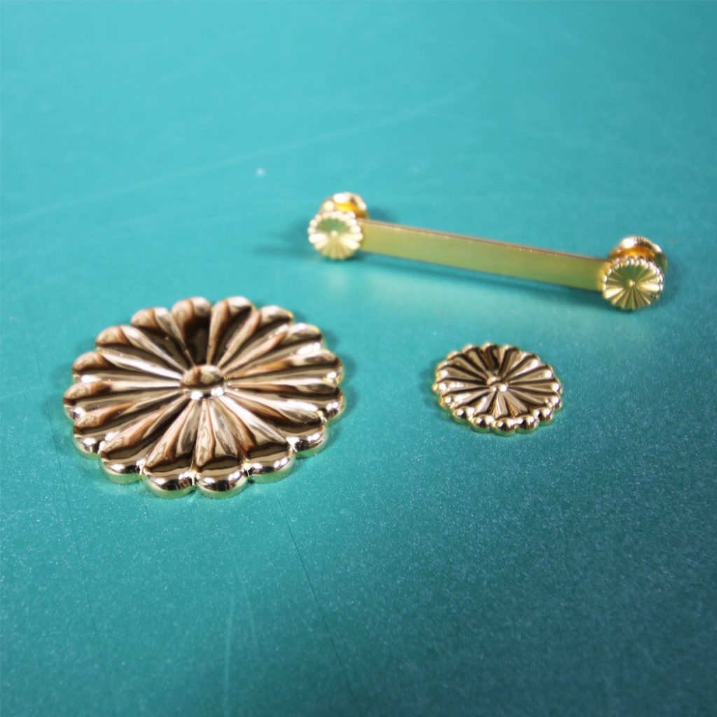 裏面にして金具、紐を取り付けします。