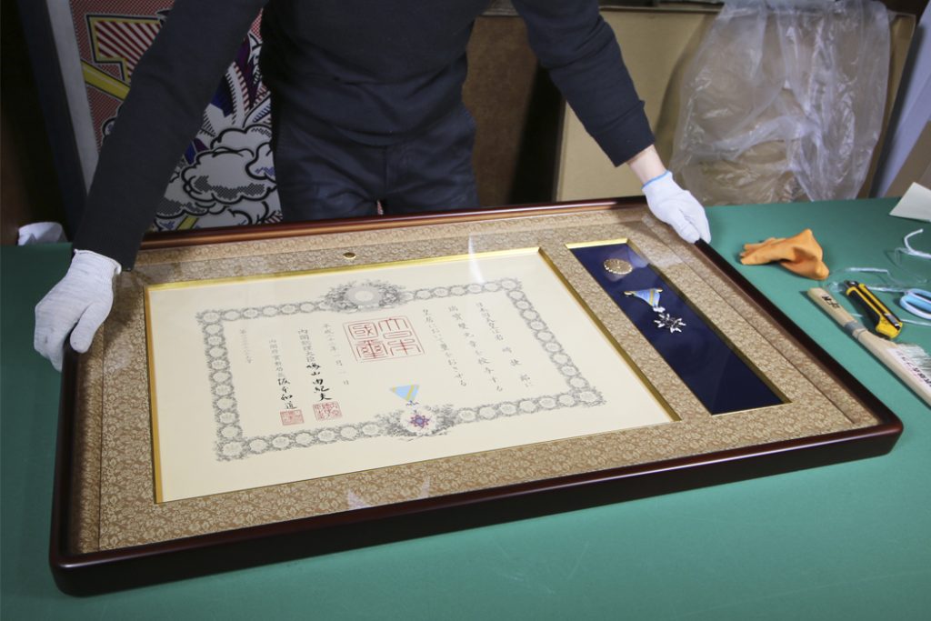 弊社では勲記勲章を額装する場合