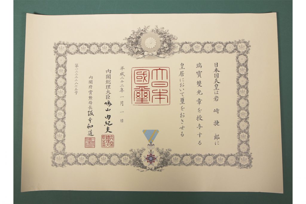 賞状。