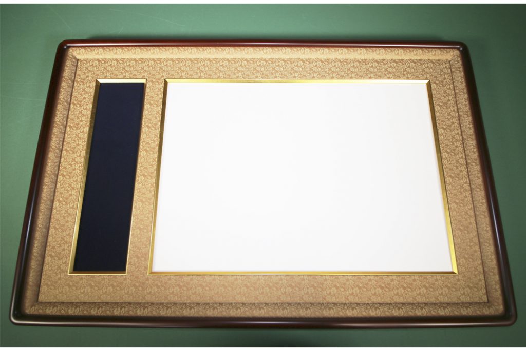 勲記、勲章を一緒に額装するための専用の額縁がございます。その額縁を使って額装致します。