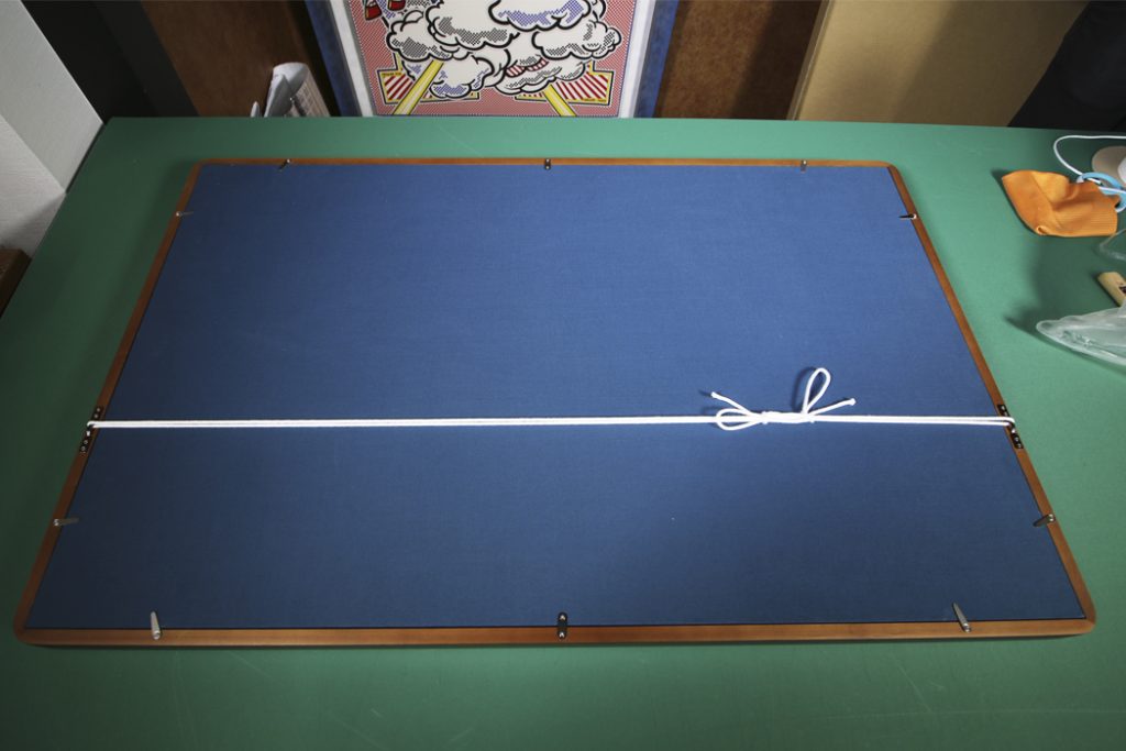 額縁裏面。弊社の勲章額は裏面布張りしてあり、非常に高級感がございます。