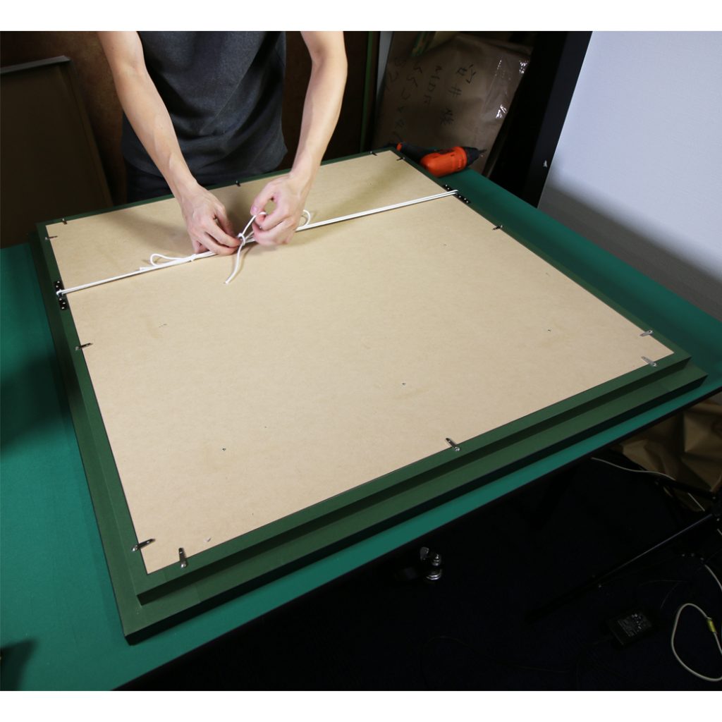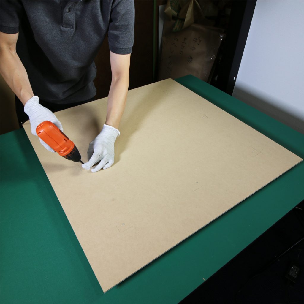 マットと作品をビスで固定します。