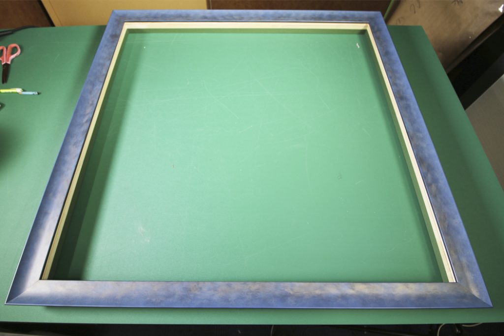 額縁を用意します。空をイメージして水色とシルバーの額縁を選びました。