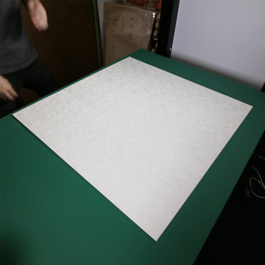裏打ち後 形状を四角に整え、皺を伸ばしました。