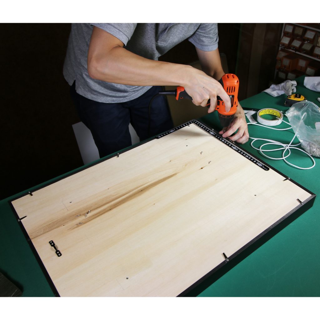 裏板を取り出し、作品を固定する位置を決めます。今回、裏板はホワイトで塗装をしております。
