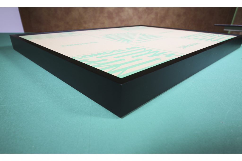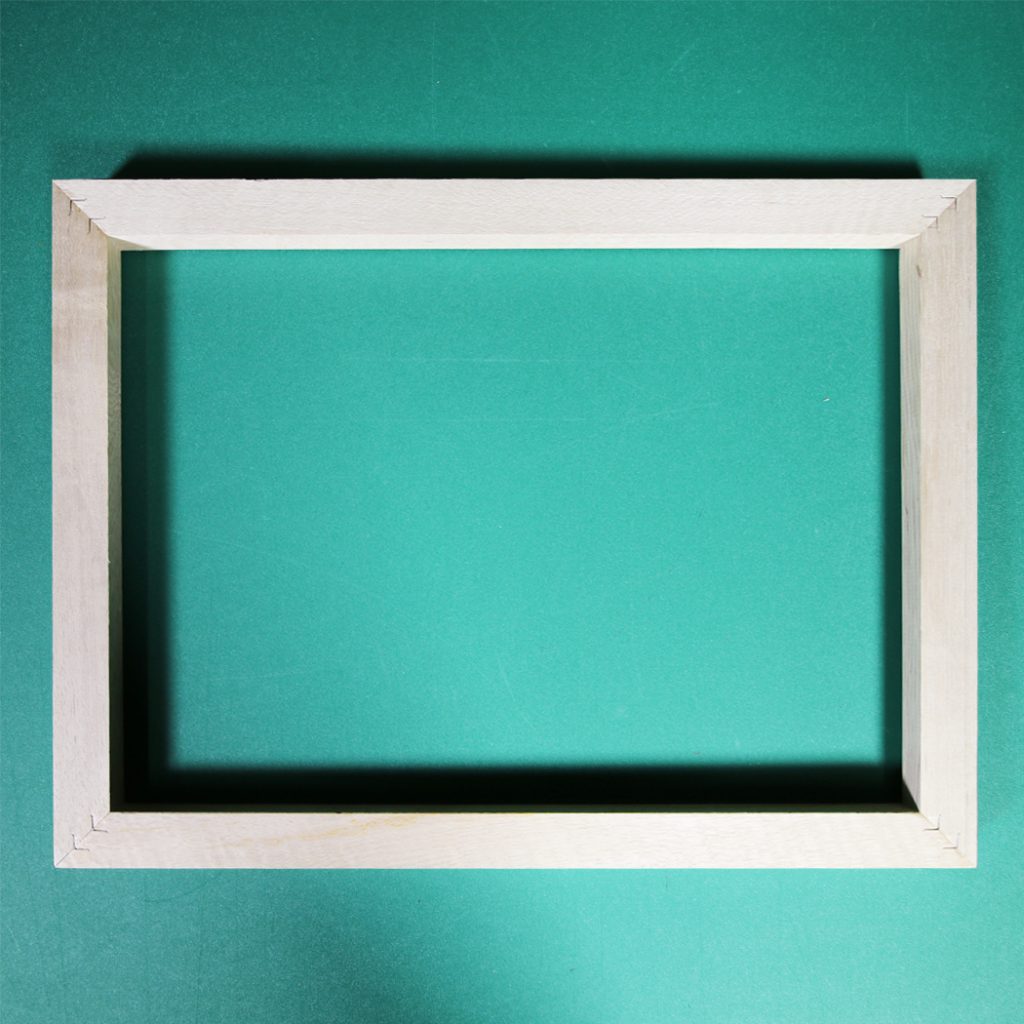 浮かし額装とは、作品を額縁の中で浮いているように見せる額装方法です。現代アートでよく使われる近代の額装方法です。