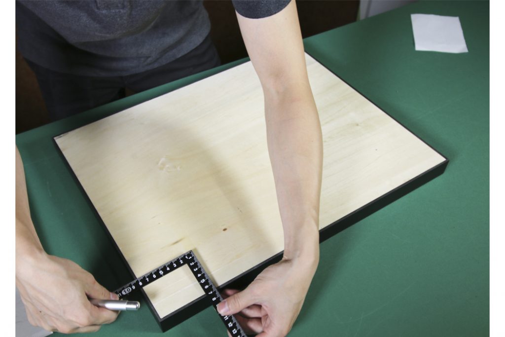 作品を取り付ける位置を決めます。