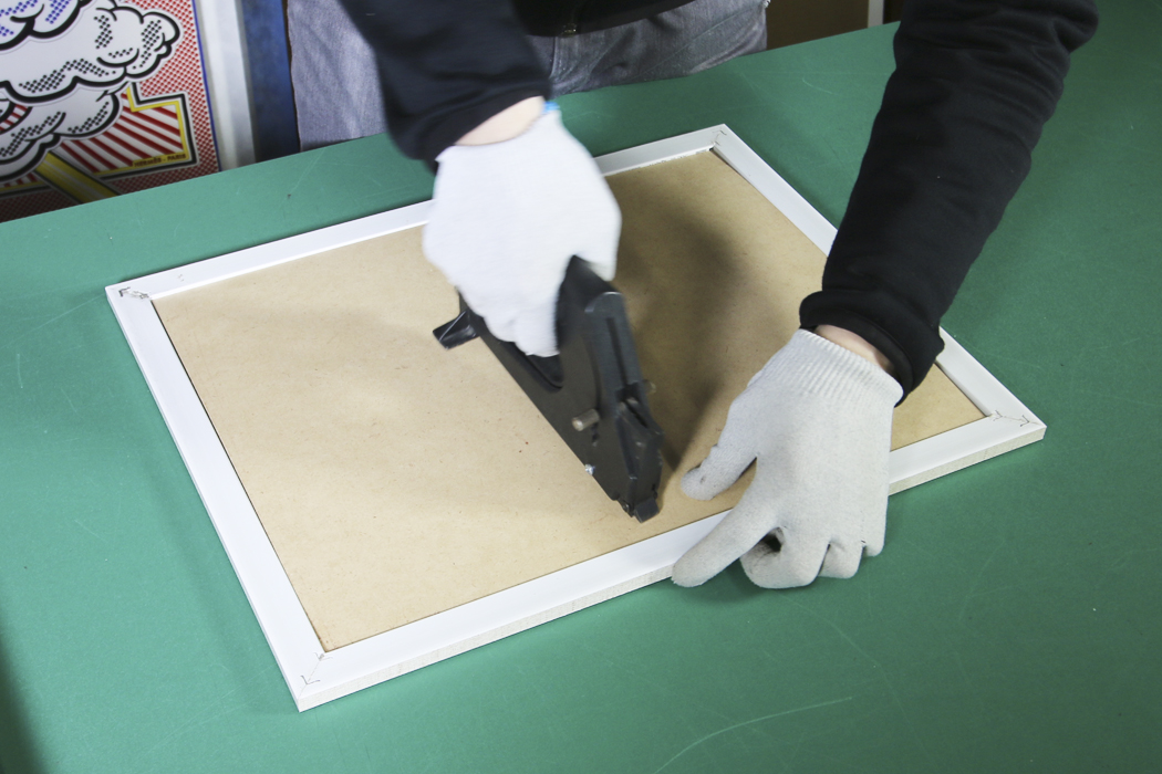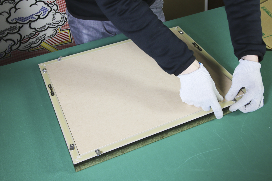 フレームマスターを使って、作品をライナーに固定します。